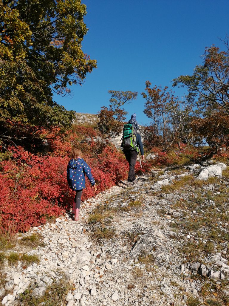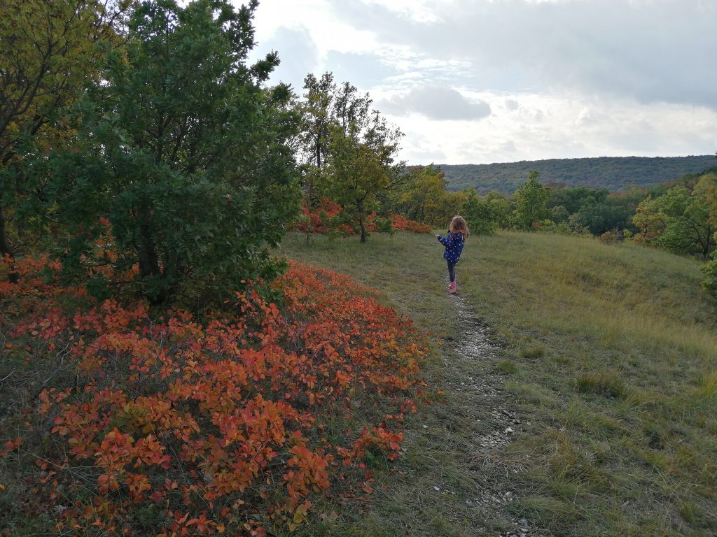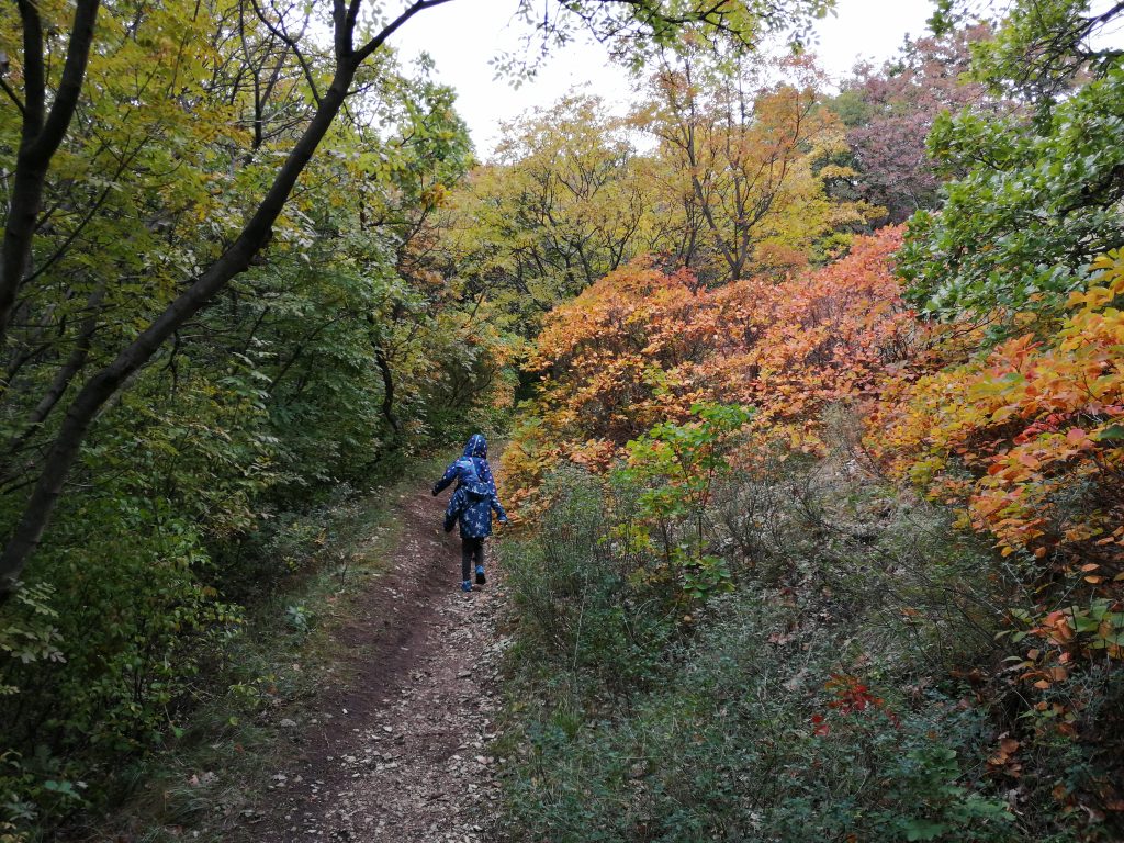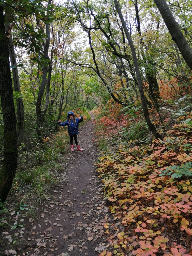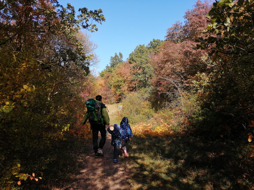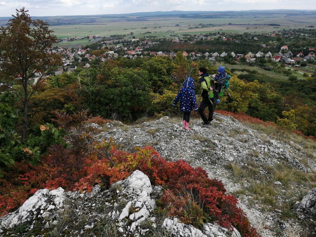A Haraszt-hegyre (domb) felsétálva többször megálltunk mert egyrészt a kicsikkel így megy a túrázás, másrészt az őszi színekben sárgálló és vöröslő helyi növényvilág ilyenkor a legszebb október közepén.