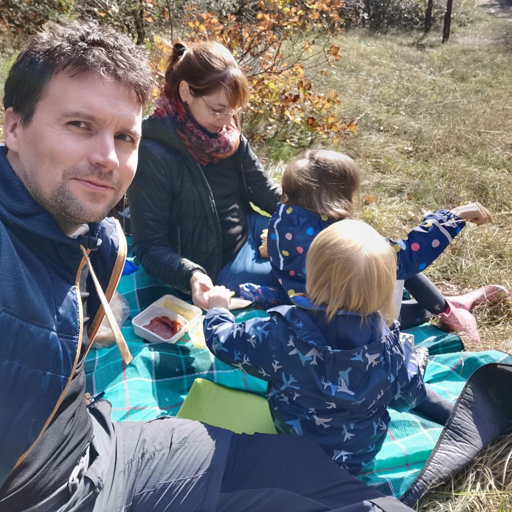 Nehezen indult a reggel, de szokásos felszereléseinket összeszedve és gyerekekkel a levonulási harcot magunk mögött tudva, zökkenőmentes egy órás autózást követően szeles, kissé kellemetlen időjárásban kezdtünk bele a túrába. Az erdő és maga a túrázás, valahogy mindig jó idővel jutalmaz minket, amit az erdő széli cserjésbe beérve rögtön újra beigazoltnak éreztünk 🙂 A túra első métereiben egy kis bemelegítő galagonya harapdálással és ízlelgetéssel kezdtünk, ami 100m-el később egy kis piknikké fajult: egy kis tisztás jobb peremén az enyhén lankás hegyoldalba bevetve magunkat, párás puha réti fűre pokrócot vetve el is dobtuk magunkat. A nap kisütött, a szél is elállt és Ancsinak hála rengeteg aprólékosan bedobozolt finomság került elő, így sajt szalámi uborka és paprika egyaránt az erdei zsömle majszolás fényét emelték. Zsófi lábára persze rögtön egy szitakötő szállt, hogy pihenjen a kedvesen virágos rózsaszínű – minden élethelyzetben bizonyító – gumicsizmáira. Fűszálakkal halakra pecáztunk és pár perc múlva ellazulva győzködtük magunkat, hogy most miért nem itt élünk éppen 🙂 Ancsi egyre extrémebb erdei amazon képét ölti: ha a kifli.hu kiszállítana mindent ami kell az erdei élethez, akkor rögtön bele is csapna velünk egyetemben, mi mint modern Robinson család 😀