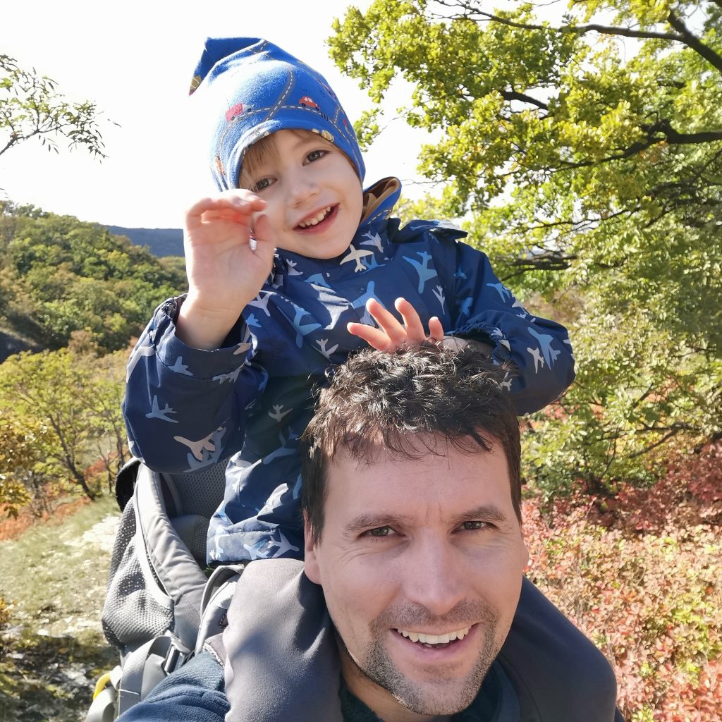 Tomi a domboldal sziklás ösvényén nem kért a segítségemből, mert Ő már nagy fiú és biztos nem esik el. A feléledt bátor önállóság azonban csak egy fáradtságtól dülöngélő kisfiút talált otthon.. végül kis szakadéknál megtorpanva belátta, hogy Apa jobbján, kezét fogva fogunk lemászni az alattunk keresztbe futó valódi erdei ösvényhez.